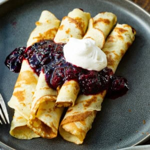 Bon Appétit describes Finnish pancakes as somewhere between “crepes, pancakes and heaven” and I couldn’t agree more. These are light and tender and ready to top with your favorite pancake toppings.