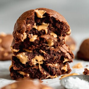 Ok, I’m getting all distracted! Back to these cookies…they are tender and so chocolatey! With those little morsels of peanut butter loaded inside, these cookies are absolute bliss.