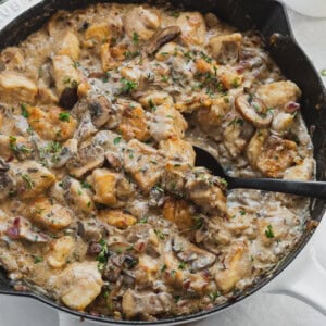 If you are a traditional beef stroganoff fan, then you are going to love this chicken breast version! Chunks of juicy golden seared chicken smothered in a savory mushroom gravy is pure comfort food.