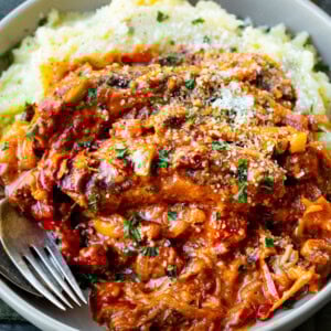 The quickest way to reheat this dish is the microwave, especially if you’re just warming up a single serving. It should be ready in about one minute. You can also reheat the sauce on the stovetop in a skillet over medium-low heat until heated through. You’ll most likely need to add a little extra cream or milk to thin out the sauce as it reheats.