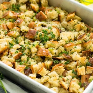 We’ve heard you yelling from the rooftops that you love stuffing. And I know some people are stuffing purists. Just bread, butter, simple veggies, and herbs. This is the recipe for you!