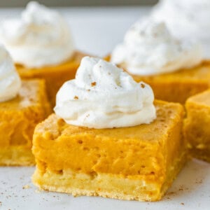 If butter is involved, then you can count me in! This pumpkin gooey butter cake melts in your mouth. That cake mix crust is so simple yet heavenly, and the pumpkin cake is perfectly spiced and creamy. Skip the pumpkin pie this Thanksgiving and make this cake instead!