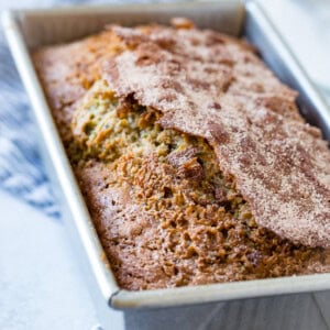 Add a Cinnamon Sugar Topping — This part is totally up to you, but we’ve found that a generous sprinkling of cinnamon sugar over the batter right before it goes in the oven is a game changer. It creates this yummy, crackly top that is irresistible.