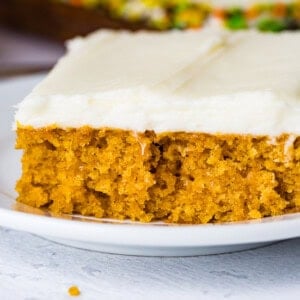 This Pumpkin Sheet Cake is a soft and fluffy pumpkin cake that comes together in just a matter of minutes and is topped off with a luscious cream cheese frosting.