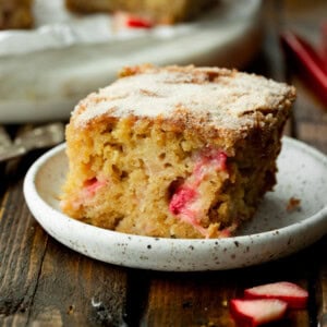 Pour the boiling water over the rhubarb to soften it. It only needs to sit for like 30 seconds. Drain the water off and squeeze it with paper towels to remove as much water as possible. Then fold it into the batter.